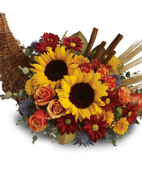 Along with joy, this cornucopia carries an abundance of beautiful fall flowers and foliage. A stunning centerpiece or inviting entryway display, this beauty will be at home anywhere in the house.