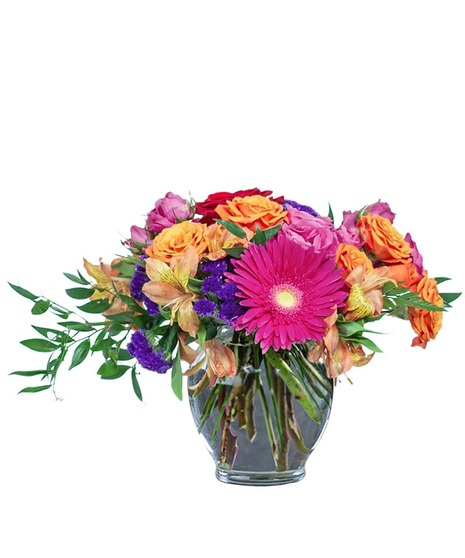 The world is your parade - embrace it. Daisy Parade is a colorful mix of love. A hot pink Gerbera Daisy, roses, and alstroemeria will have them walking in the sun.