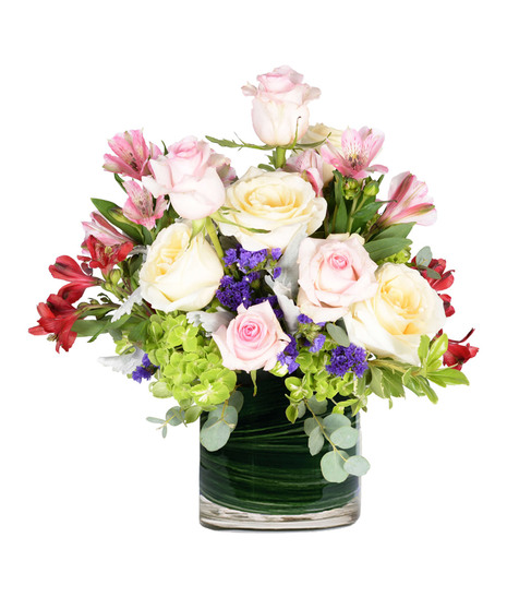 Love a morning sunrise? Daybreak will remind that special someone of life's beauty. Flowers like roses, alstroemeria, and other flowers arranged in a cylinder vase is perfect to show how much you care for any occasion.