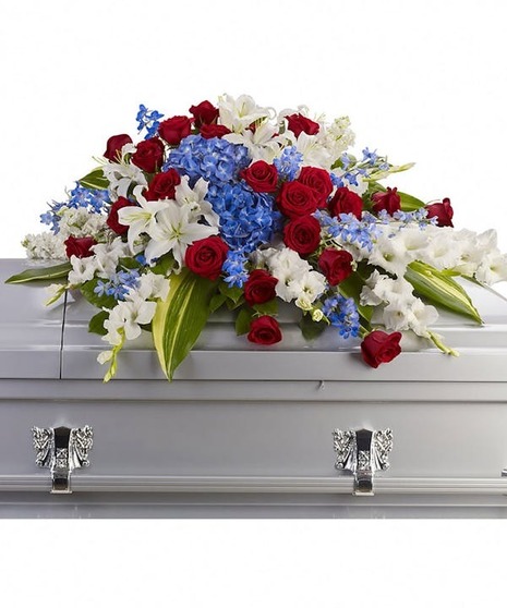 A beautifully patriotic way to pay tribute to a loved one. This half-couch spray sends an eloquent message of strength, respect and freedom.