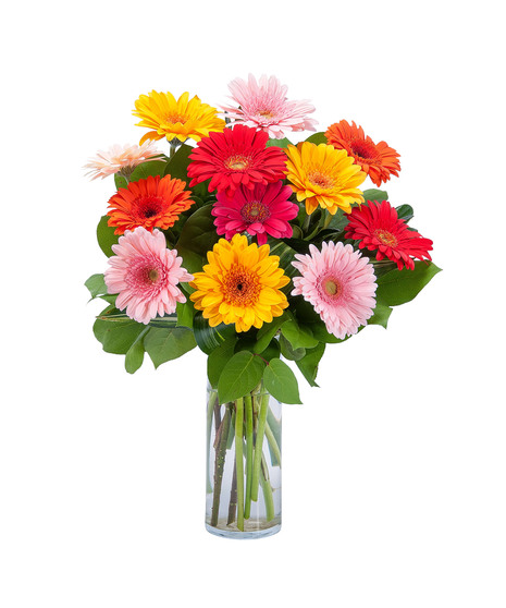 Mixed color gerbera designed in a clear vase make a grand statement.