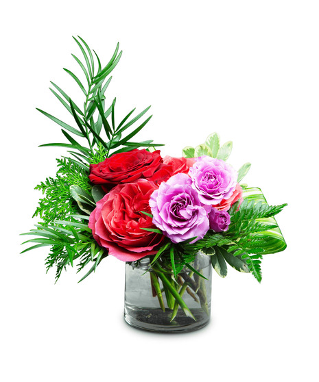 As romantic as the sun, sand, and water. Island Romance is the perfect mix of mystique and charm. Our clear glass cylinder vase is filled with stunning roses.