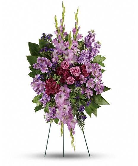 Console and comfort with this luxurious spray of lavender roses, alstroemeria and gladioli. It's a majestic way to remember the departed at the memorial service.