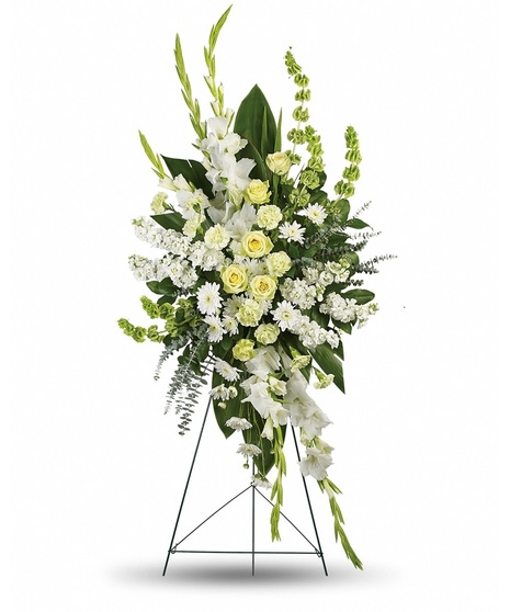 A maginificent symbol of love and peace, this pure white and green spray conveys your sympathy with elegance and grace.