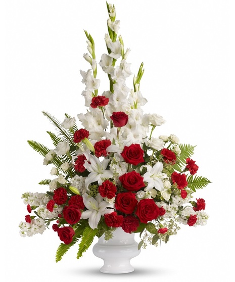 For the sweet spirits who touch our lives, a classic pairing of red and white that is both vibrant and respectful. Beautifully contained in a white urn.