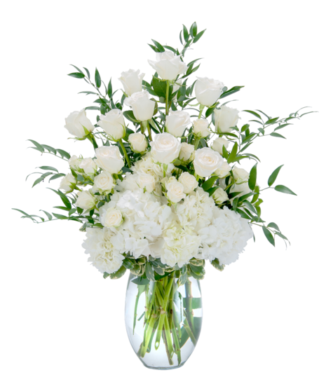 This lush and lovely combination of roses and hydrangea is purely elegant.