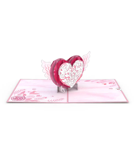 The Winged Heart pop-up card is 5 inches wide by 7 inches tall.