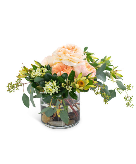 Oh, darling, You're a Peach! Send this beautiful gift of flowers, You're a Peach, an arrangement overflowing with garden roses, Leucadendron seeded eucalyptus, and stones underwater to that special peach in your life. A choice of hand-arranged flowers that are likened to the beautiful fruit itself.