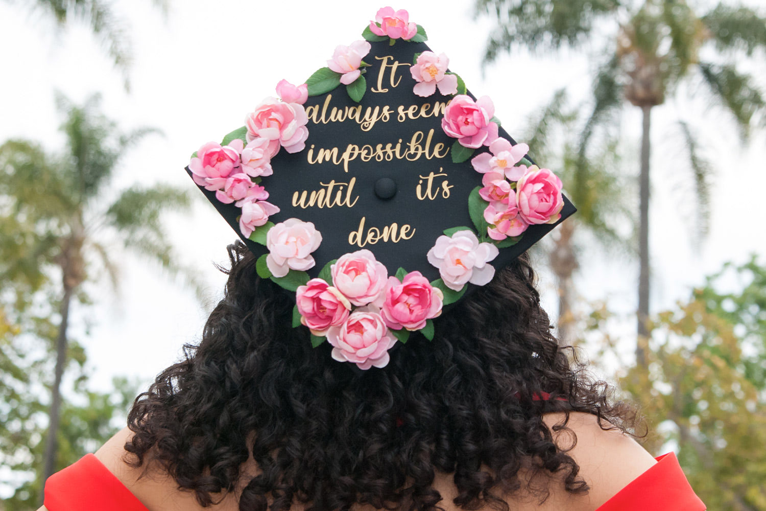 Some graduating classes go all out decorating their caps for the ceremony. Many graduates dress up their caps with quotes and adornments that speak to their unique style, personality, hobbies, or career choices. It's another way to express emotions as one chapter closes and another begins. If you're looking for a way to stand out in the crowd (literally), add some flowers to your cap! Whether you cover the entire surface, fasten blooms to the perimeter, or use them as accents, your graduation cap will be extra fresh and fabulous.