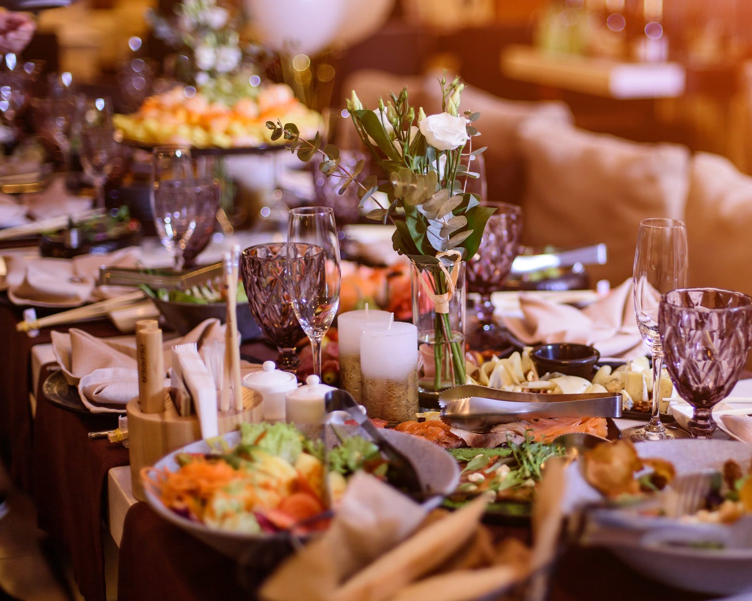 - Comfortable corners with throw blankets, low lighting, and snacks for guests who want to chat or take a breather