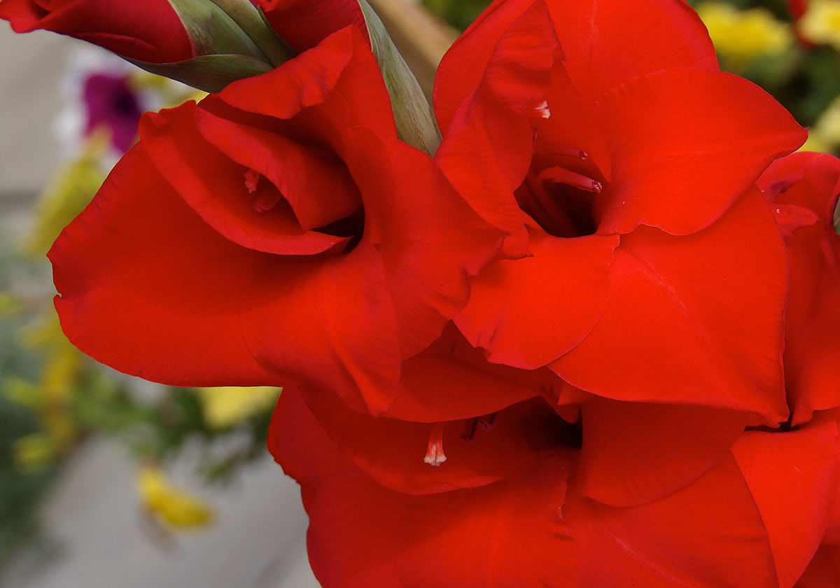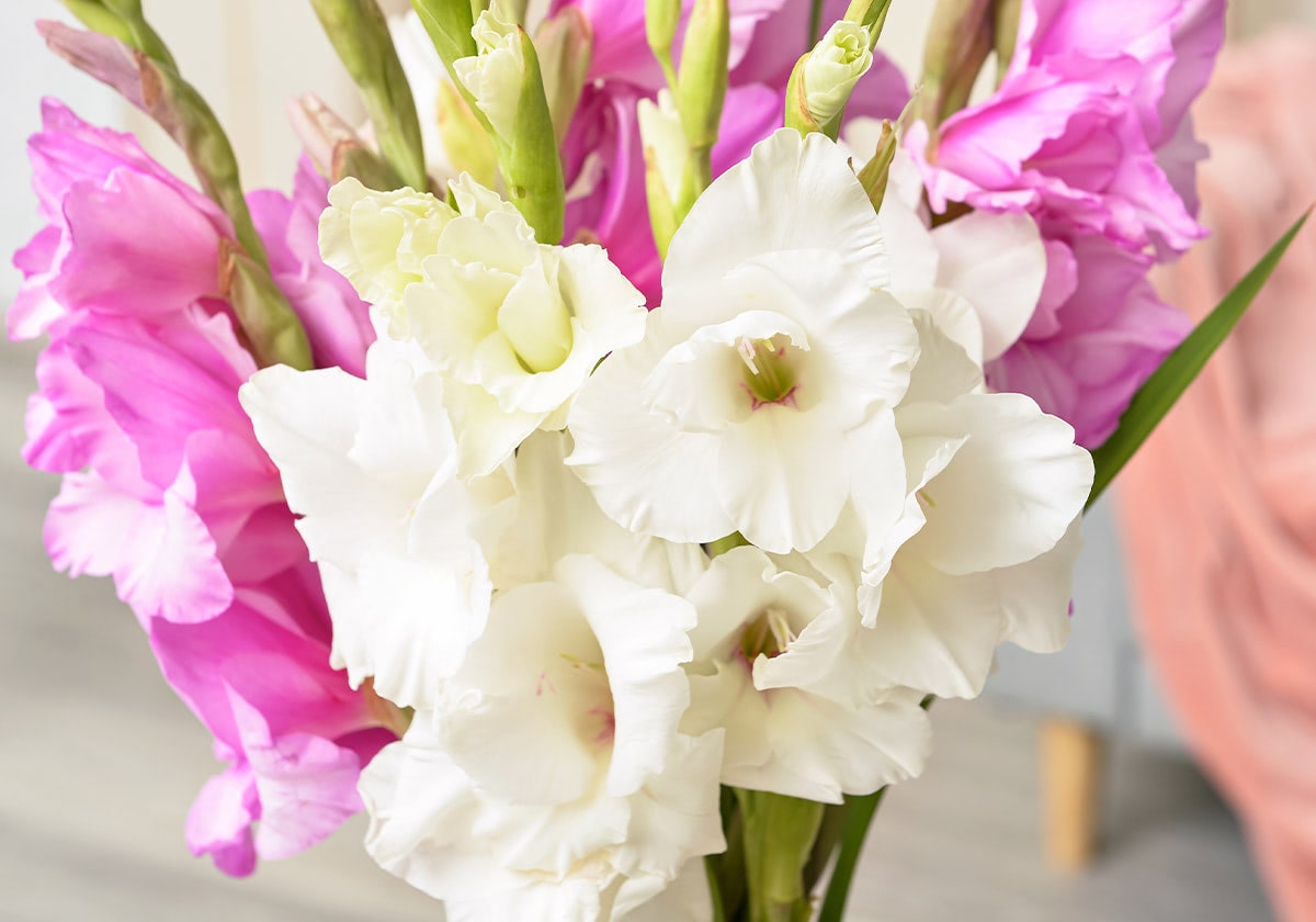Gladiolus blooms are funnel-shaped and usually range from 2 to 4 inches wide. Their sturdy stems allow them to stand tall in any arrangement, whether as a focal point in a vase or as part of a larger floral display. Though they're bold and striking, gladiolus flowers are also incredibly versatile, pairing beautifully with a variety of other blooms and greenery.