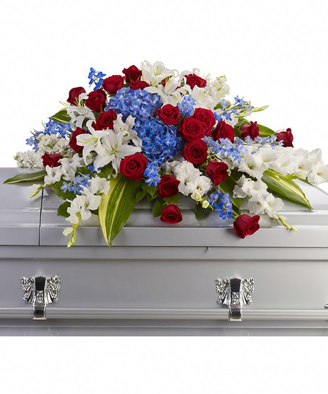 The elegant array of roses, carnations, and lilies showcases the enduring spirit of patriotism and the honor of service. The vibrant red roses signify courage and love, while the pure white lilies represent peace and innocence. Adding blue delphiniums and other accents brings a sense of dignity and reverence, making this collection a fitting tribute to someone who served with honor and distinction. Whether you’re sending these flowers to a funeral service, memorial, or directly to the family’s home, the Patriotic Tribute Collection serves as a powerful and meaningful expression of sympathy. It honors the life and service of the departed and provides comfort and solace to the grieving family.