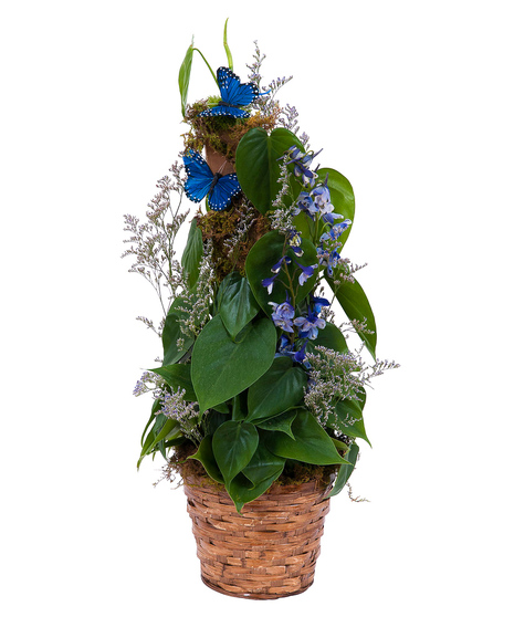 A beautiful green plant combined with flowers and butterflies make a wonderful gift for any occasion.