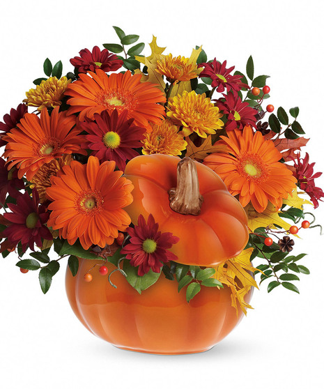 Perfect for a fall centerpiece, birthday or Halloween party, this flower-filled ceramic pumpkin is a real cutie-pie.