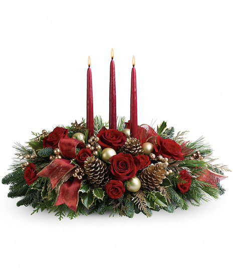 All will be bright this season when you order this joyful Christmas arrangement. A lovely centerpiece, it will light up the holiday festivities beautifully.