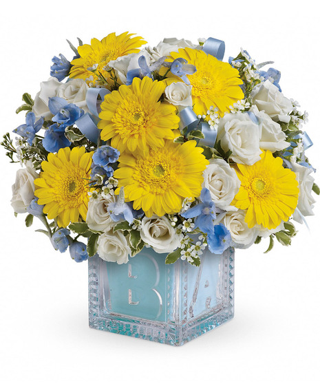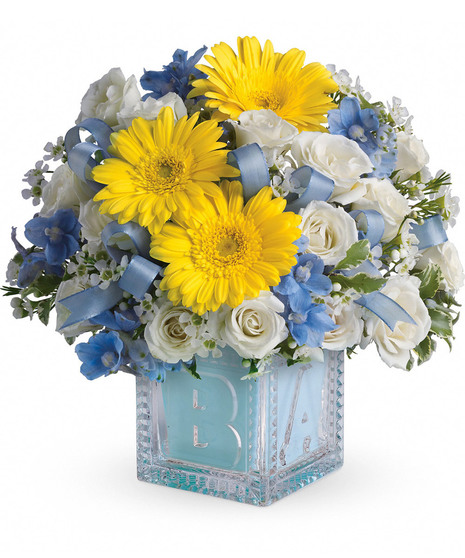 Celebrate the coolest baby boy on the block's arrival with this charming glass baby block that arrives chock full of pretty flowers. Perfect for baby showers, too! The glass block will make an adorable display piece for years!