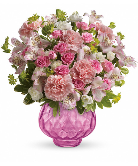 Give her a wink with pink! This blushing bouquet gathers beautiful blooms into a brilliant gem vase. It's a pink-tastic celebration of spring they'll enjoy today and all year long!