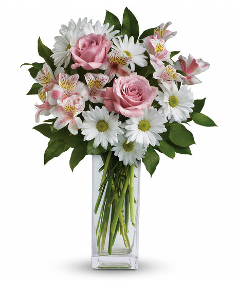 Soft and delicate, this pale pink and white bouquet speaks to the purity and simplicity of your adoration.