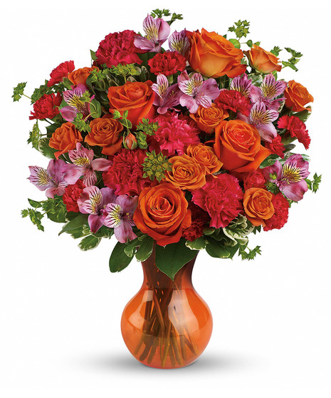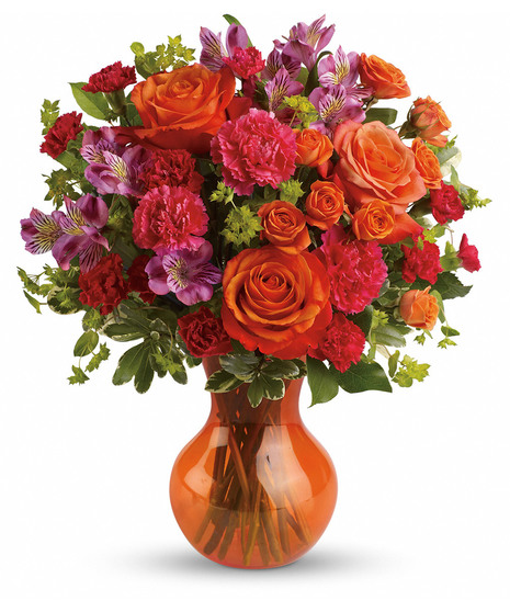 At once bold and delicate, this gorgeous gathering of pink and orange blooms is a fabulous way to fancy up her day.