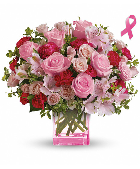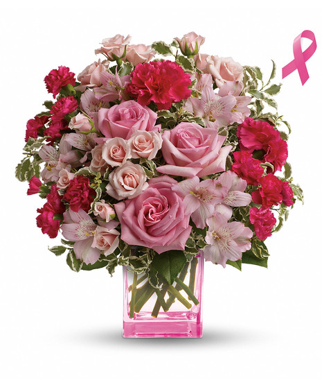 Celebrate a fabulous woman in your life with a beautiful mixed bouquet featuring pink roses and arranged in a perky pink cube. She'll be thrilled with this charmingly feminine gift - and touched by your thoughtfulness because it is also a gift for others!