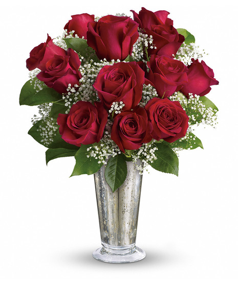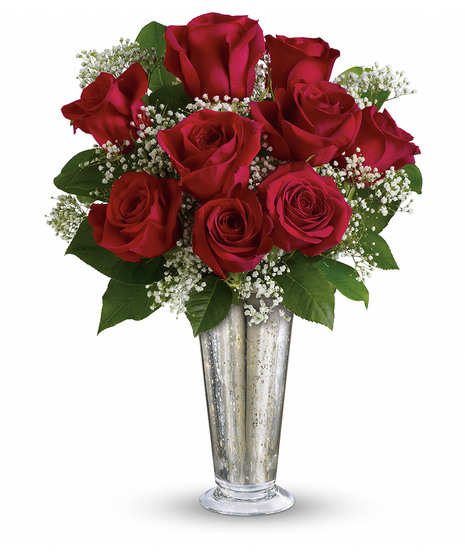 True love. Sweet love. Beautiful love. Celebrate all flavors of love with this elegant arrangement of roses hand-delivered in a stunning silver Mercury Glass Vase.