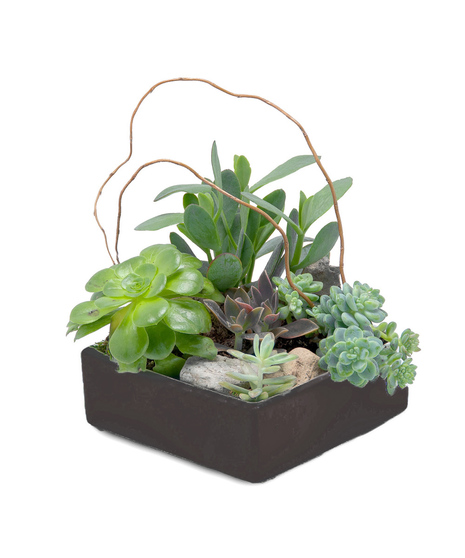 Popular and easy care succulents in a white ceramic container make a stunning garden.