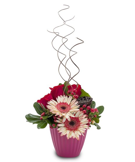 A pleasingly pink combination of Roses and Gerbera Daisies.